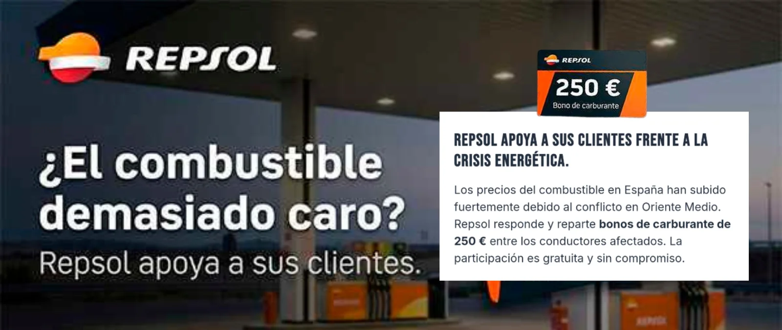 Repsol no sortea bonos de carburantes de 250 euros entre los conductores afectados por la subida del precio de la gasolina, es un timo