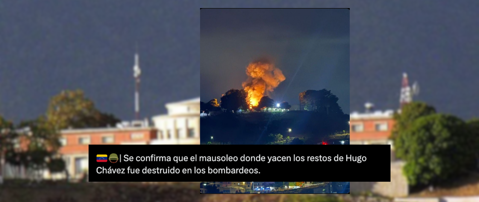 Esta imagen no muestra un bombardeo de EEUU al mausoleo donde se encuentran los restos de Chávez en el Cuartel de la Montaña: es el Comando General de la Milicia Bolivariana