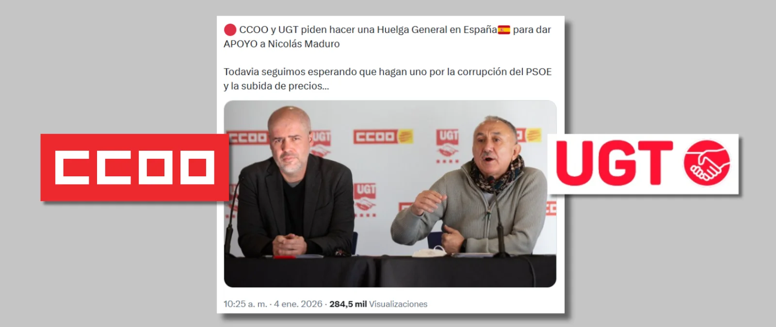 No, Comisiones Obreras y UGT no han pedido una huelga general en España para apoyar a Nicolás Maduro