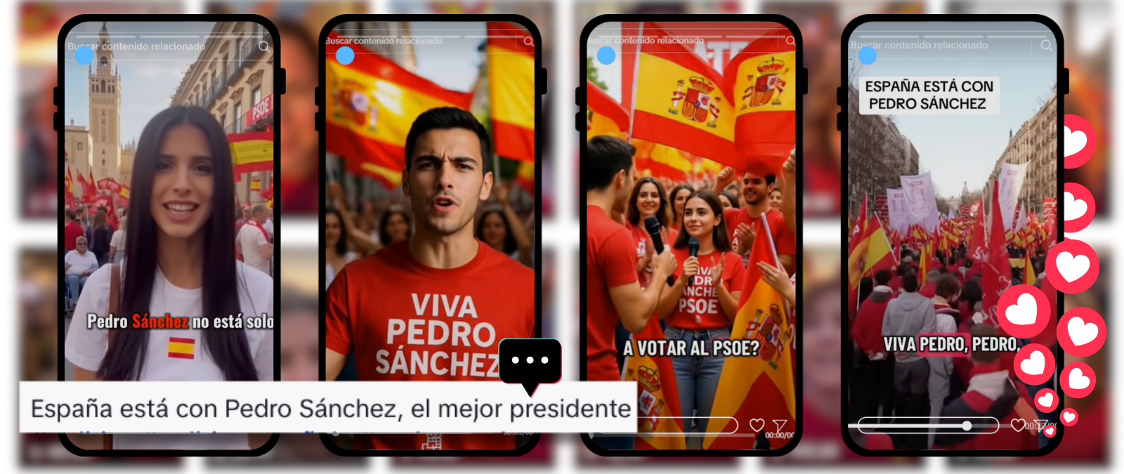"Sánchez, estamos contigo": vídeos de manifestaciones creados con inteligencia artificial para apoyar al PSOE en TikTok