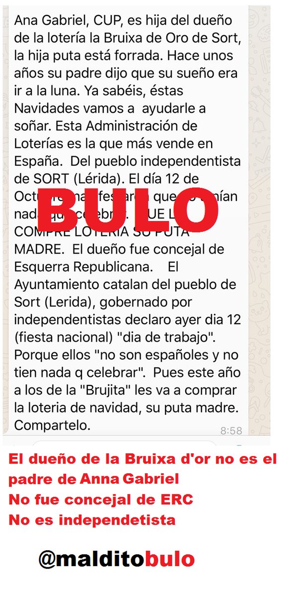 No, Anna Gabriel no es la hija del dueño de la Bruixa d´Or y él se ha declarado en contra de la independecia