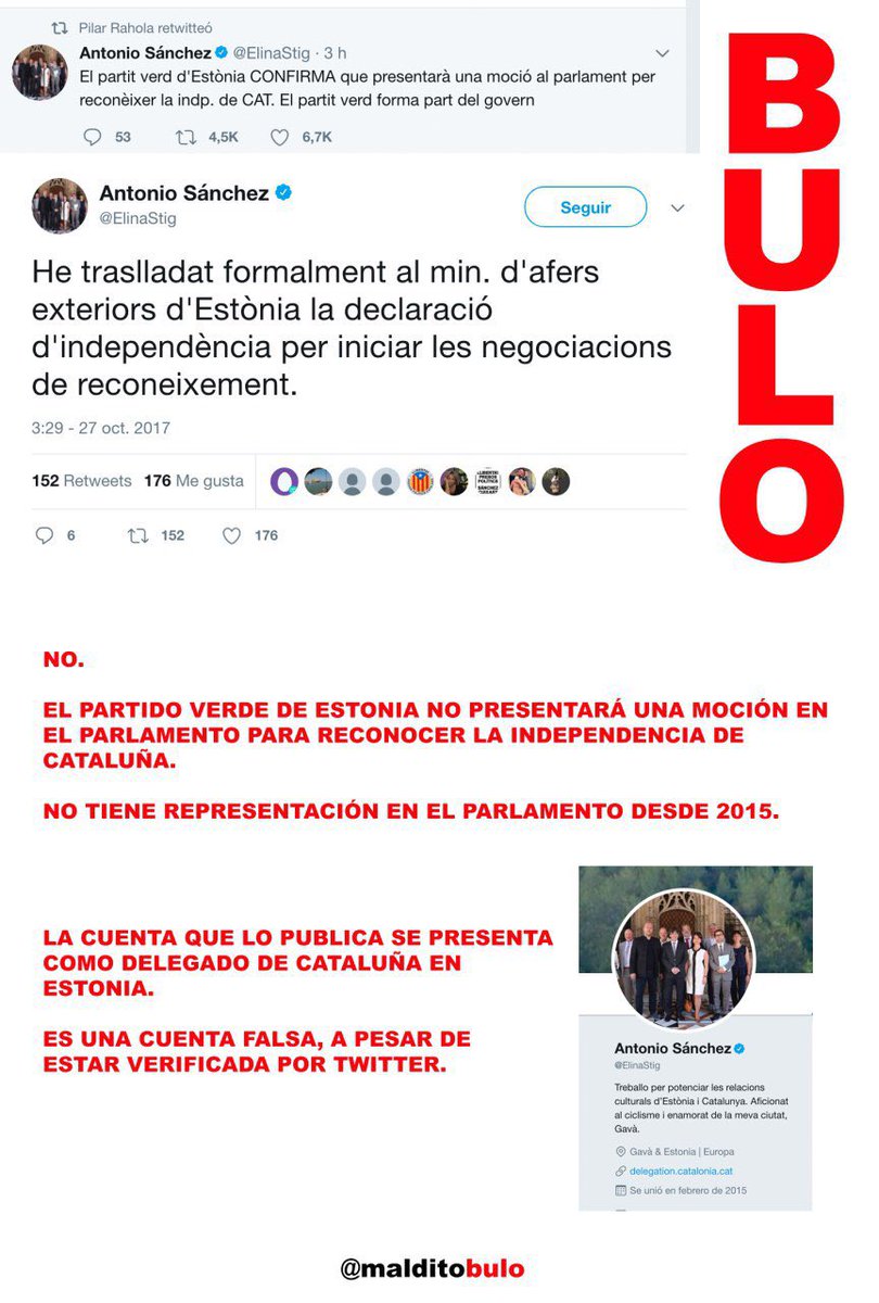 La cuenta que lo publica se presenta como Delegado de Cataluña en Estonia. Es una cuenta falsa.