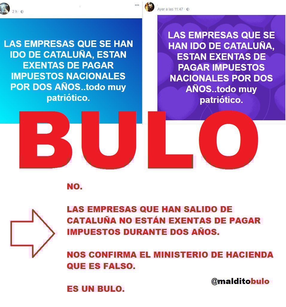 Las empresas que han salido de Cataluña no están exentas de pagar impuestos durante dos años. El Ministerio de Hacienda confirma que es falso.