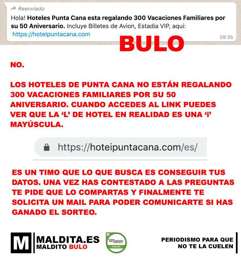 «[T] No, los hoteles de Punta Cana no están regalando 300 vacaciones familiares por su 50 aniversario»