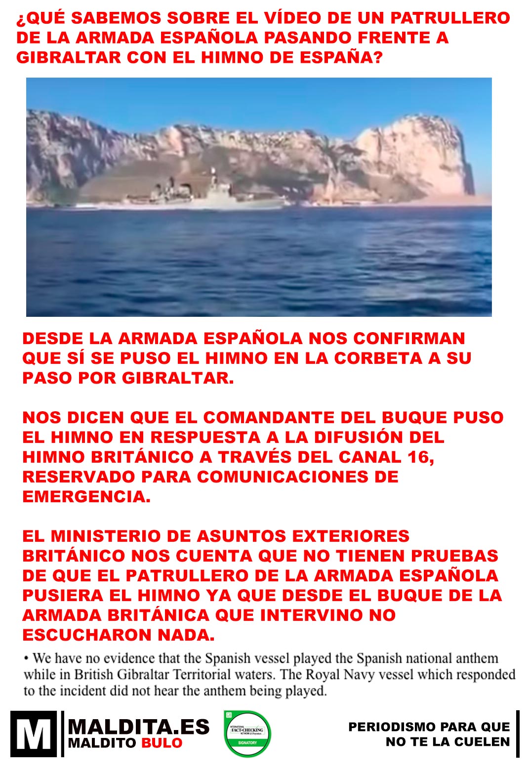 «[T] ¿Qué sabemos sobre el vídeo de un patrullero de la Armada Española pasando frente a Gibraltar con el himno de España?»