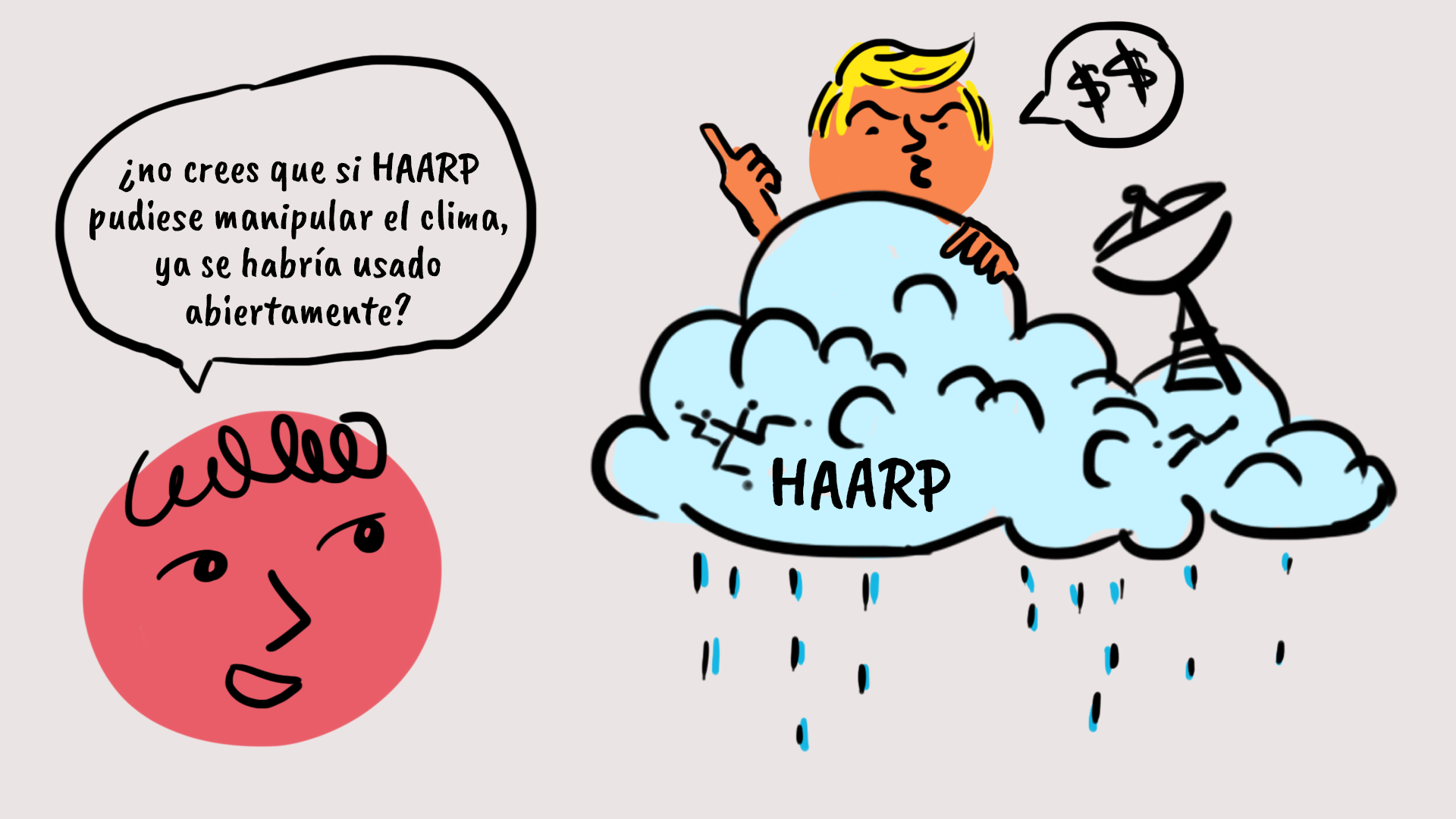 En ese sentido se expresa también la web de HAARP, donde responde a si el proyecto puede controlar o manipular el tiempo: “Las ondas de radio en los rangos de frecuencia que transmite HAARP no son absorbidas ni en la troposfera ni en la estratosfera, los dos niveles de la atmósfera que producen el clima de la Tierra. Al no haber interacción, no hay forma de controlar el clima. El sistema HAARP es básicamente un gran radiotransmisor. Las ondas de radio interactúan con cargas y corrientes eléctricas, y no lo hacen de forma significativa con la troposfera”. HAARP también indica que, como las tormentas en la ionosfera producidas por la actividad del Sol no afectan al tiempo en la superficie, “HAARP tampoco puede hacerlo”.