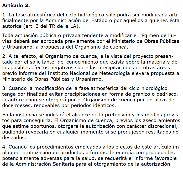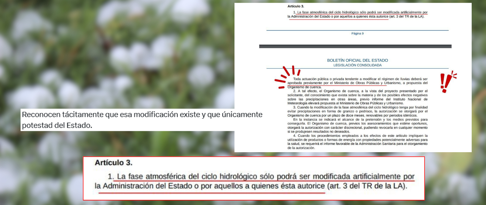 El motivo por el que cada cierto tiempo circulan fragmentos de boletines oficiales con ese entrecomillado, el de “modificar artificialmente” el tiempo, es que en España sólo el Estado, o quienes éste autorice, pueden realizar estas prácticas, según la Ley de Aguas. Además, el reglamento que la desarrolla indica que si esta modificación busca “evitar precipitaciones en forma de granizo”, deberá extenderse una autorización expresa. Es decir, que las redes antigranizo deben pedir permiso al organismo oficial encargado de gestionar el agua en su región y que los permisos obtenidos serán decisiones públicas.