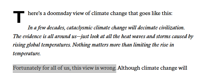 ¿Ha dicho que “no será el fin del mundo”? Lo que dice exactamente es: “El cambio climático es un problema grave, pero no será el fin de la civilización”