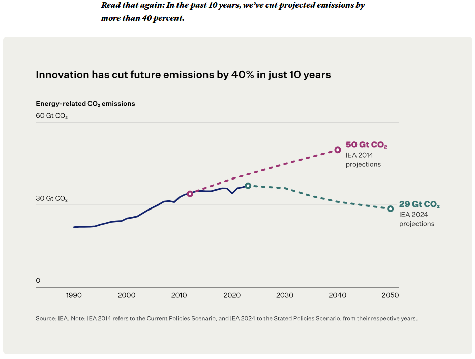 Así, Gates está diciendo que no deberían priorizarse los esfuerzos en reducir emisiones frente a otras cosas que mejoran la calidad de vida; pero a su vez, dice que reducir estas primas verdes, vinculadas a las emisiones, debe ser una prioridad.