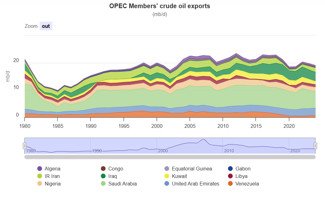 Respecto a los datos sobre la comercialización del crudo venezolano hacia el exterior, la Organización de Países Exportadores de Petróleo (OPEC en sus siglas en inglés) publica datos sobre las exportaciones de sus países miembros, entre ellos Venezuela. Según la OPEC, en 2024 Venezuela exportó 660.000 mil barriles diarios, lo que representa un 3,45% del total de exportaciones de petróleo de ese año.