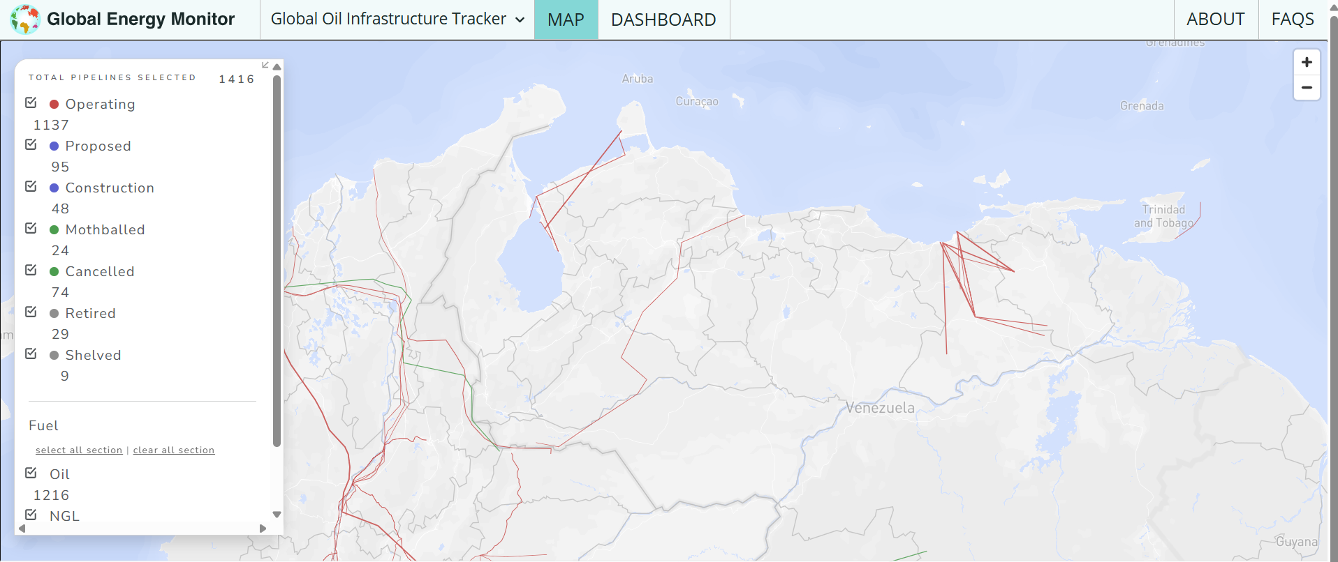 Por otro lado, la iniciativa Global Energy Monitor cuenta con un rastreador que permite visualizar en un mapa interactivo las infraestructuras de petróleo y gas en el país latinoamericano.
