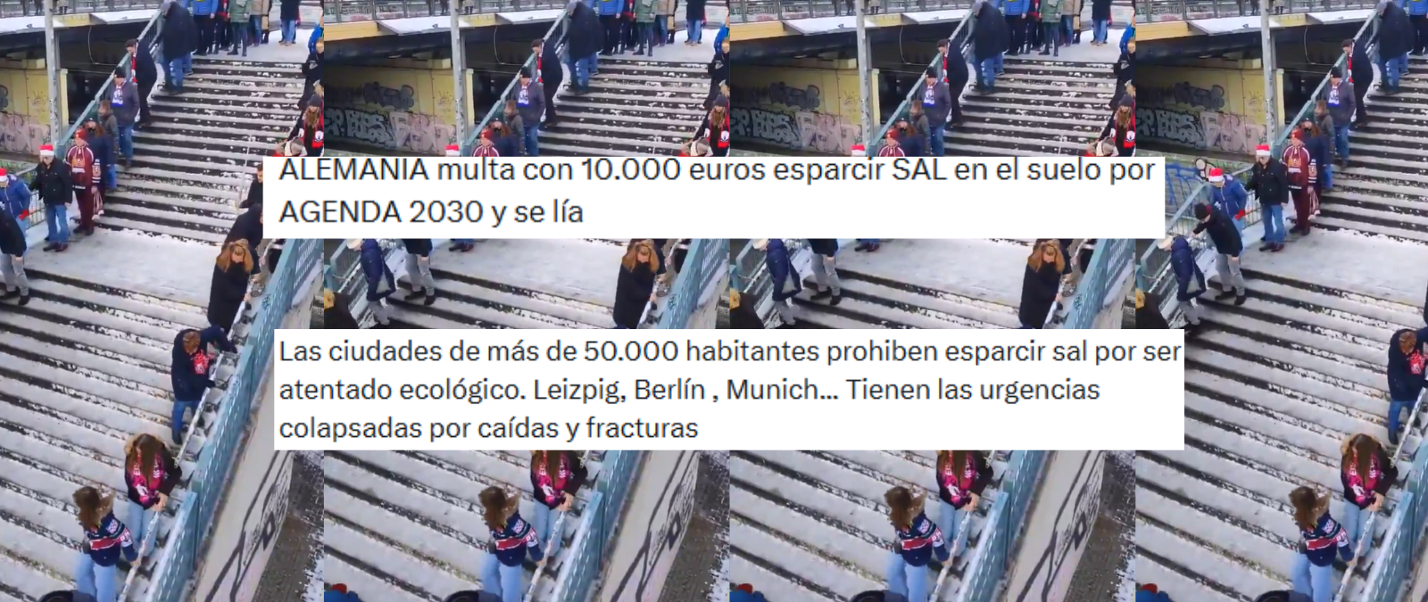 Cuidado con los contenidos que señalan que “Alemania multa con 10.000 euros” echar sal antihielo “por la Agenda 2030” y que las urgencias están “colapsadas por caídas y fracturas”