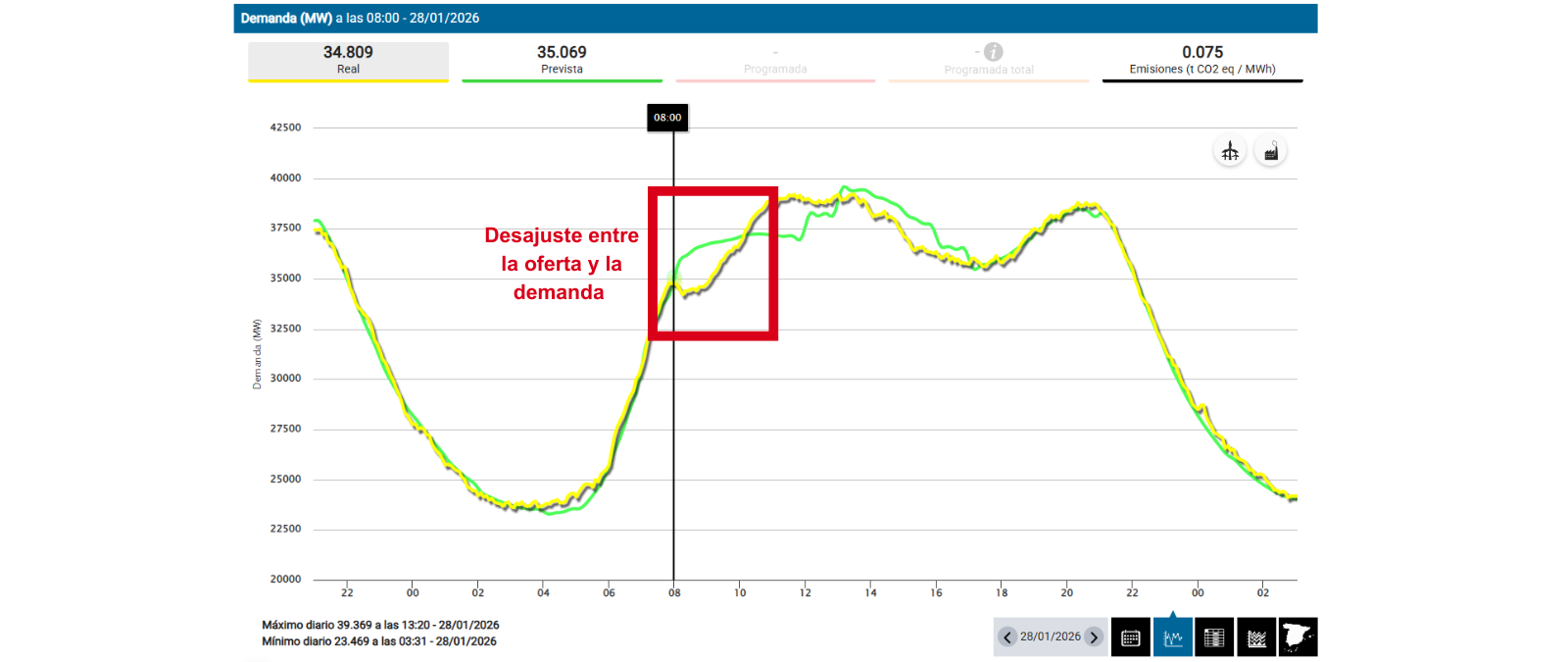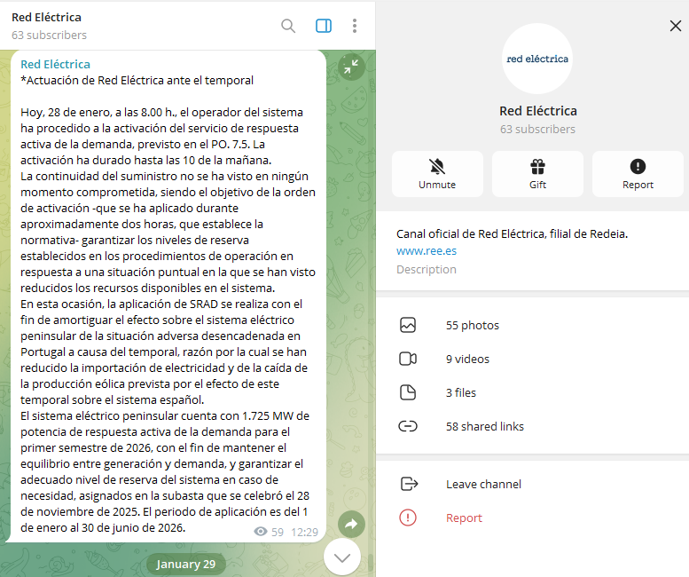 El 28 de enero de 2026 a las 08:01 h y a las 08:16 h, Red Eléctrica activó el Servicio de Respuesta Activa de la Demanda (SRAD). El SRAD es un mecanismo de inscripción voluntaria creado en 2022 que permite interrumpir el consumo eléctrico de grandes consumidores, como la industria metalúrgica, por un máximo de 2 horas seguidas. Los centros participan en una subasta y se comprometen a reducir su consumo, como mucho, en 12 minutos y medio tras ser avisados por Red Eléctrica. A cambio, reciben una retribución. Desde REE afirman que “en ningún momento estuvo en riesgo el suministro”, tal y como sugieren algunos contenidos que hablan de un apagón. Explican a Maldita.es que la situación se superó “porque el Centro de Control de Red Eléctrica había programado con más margen del habitual y lo que se hace con el uso del SRAD es recuperar el nivel de reservas del sistema”.