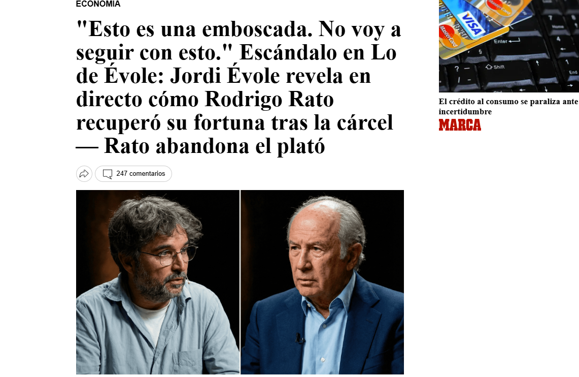 «Jordi Évole destapa en una entrevista que Rodrigo Rato ha vuelto a hacer fortuna gracias a la plataforma de inversión Exacto Creditant»