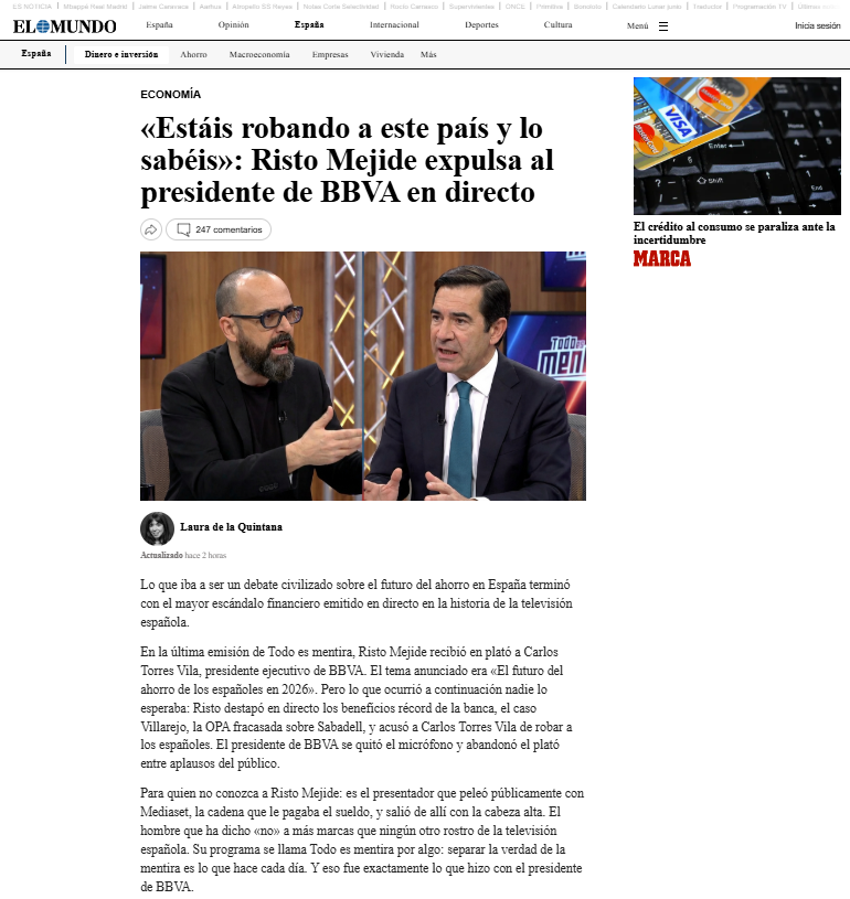 «Estáis robando a este país y lo sabéis»: Risto Mejide expulsa al presidente de BBVA en directo https://share.google/GivCB6Tt26827JFNm