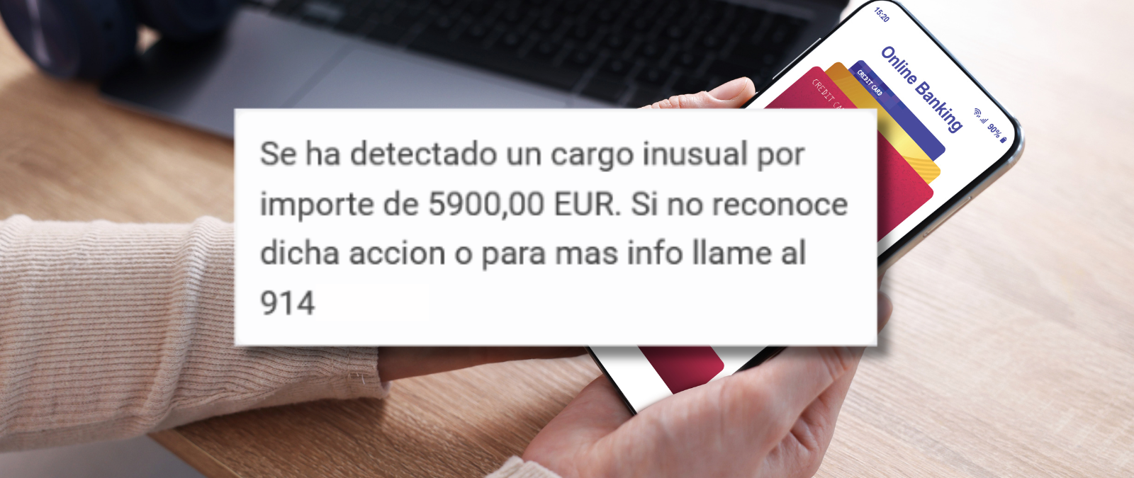 Oney, una empresa que ofrece servicios financieros de préstamos y seguros, no está enviando este SMS que alerta de un “cargo inusual” de 5.900 euros en tu cuenta. Un lector de Maldita.es ha asegurado haber recibido otros tres mensajes con distintos importes. Oney ha asegurado a Maldita.es que este SMS es un intento de suplantación de identidad “que busca generar alarma para que el usuario actúe de forma impulsiva”. El mensaje de texto incluye un número de teléfono al que llamar en caso de no reconocer el movimiento bancario, pero mucho cuidado porque no corresponde a la empresa, como indican a Maldita.es. El teléfono oficial de Oney al que se puede llamar para reportar intentos de timo es 912 700 876, mientras que el número fraudulento empieza por 914.
