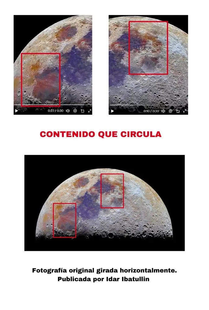 La NASA ha publicado fotografías oficiales de la misión, diferentes a las que contiene el vídeo. Mientras que las imágenes incluidas en la galería de la NASA muestran la Luna con tonos blanquecinos y grisáceos, en el vídeo que está circulando esta contiene cráteres de tonalidades rojizas.