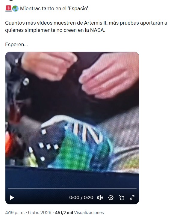 El vídeo se comparte afirmando que la misión “es falsa”. A este respecto, Mario Valle, experto en ingeniería aeroespacial y maldito con superpoderes, explica que la conspiración sería una “teoría incluso más absurda” que las conspiraciones sobre las misiones Apolo“ en cuanto a número de gente implicada”. Señala que hay que tener en cuenta que en Artemis “trabajan empresas de todo el mundo” y que el vídeo “parece una manipulación bastante burda”.