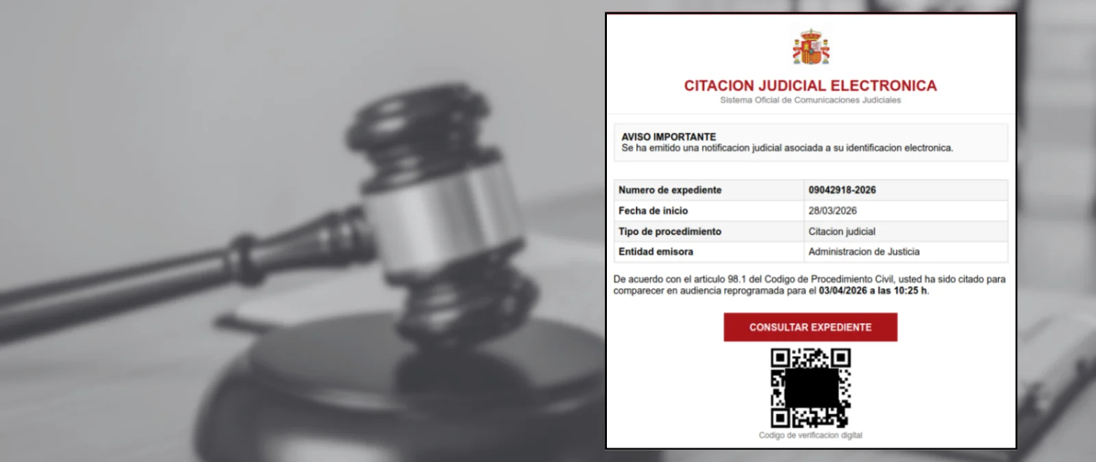 La Administración de Justicia no está enviando este correo con una supuesta citación judicial y un código QR: pretenden robar tus credenciales bancarias