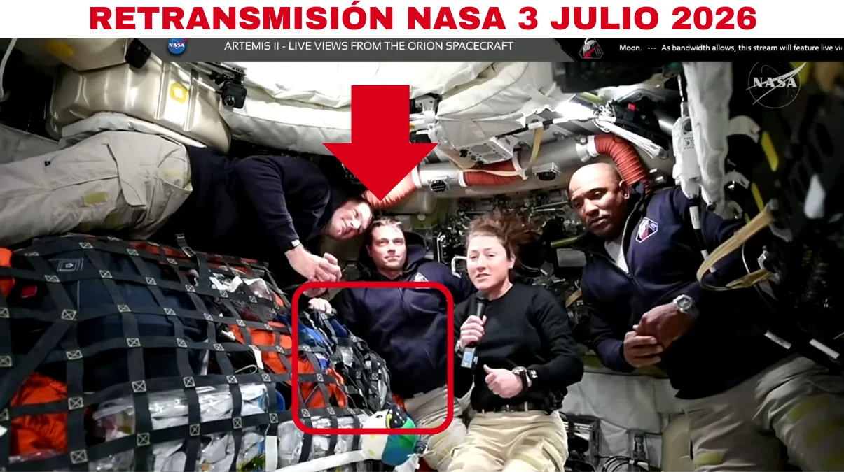 Están circulando contenidos que utilizan una imagen de los astronautas de la misión Artemis II frente a un croma para afirmar que este viaje tripulado a la Luna no habría ocurrido y que, en realidad, habría sido un montaje. La posición de los astronautas en esta imagen esidéntica a la que adoptan en un fotograma [min. 6:52:27] de una de las retransmisiones en directo de NASA el 3 de abril de 2026. Maldita.es ha detectado signos de que la imagen del croma verde habría sido manipulada.
