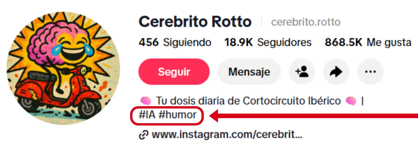 Captura de pantalla del perfil de TikTok Cerebrito Rotto con los hashtags #IA y #humor.Captura de pantalla del fotograma donde se puede ver en la esquina inferior izquierda una mancha que se mueve lo que puede indicar que la marca de agua de Sora se ha borrado.Captura de pantalla del fragmento del vídeo donde el chico dice que hace “un podcast” sin mover los labios.Captura de pantalla del fragmento del vídeo donde se puede ver el rostro deformado de una mujer.