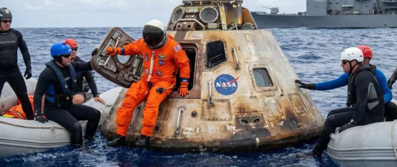 «Es real la foto del amerizaje de Artemis II con la pegatina de la NASA en la nave»