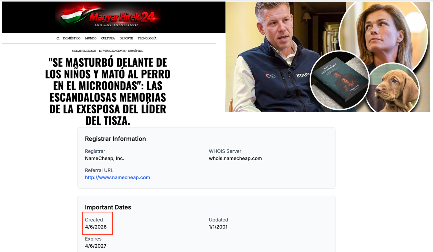 El contenido se publicó por primera vez el 6 de abril en el portal Magyar Hirek 24, en plena campaña electoral previa a las elecciones celebradas en Hungría el domingo 12 de abril, que dio la victoria a Magyar.