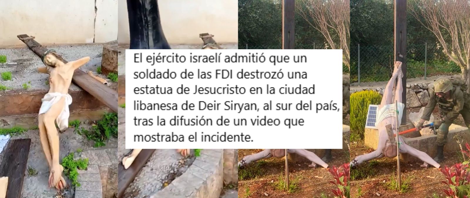 «Vídeo muestra la estatua de Jesucristo destrozada en el sur de Líbano por un soldado de las FDI»