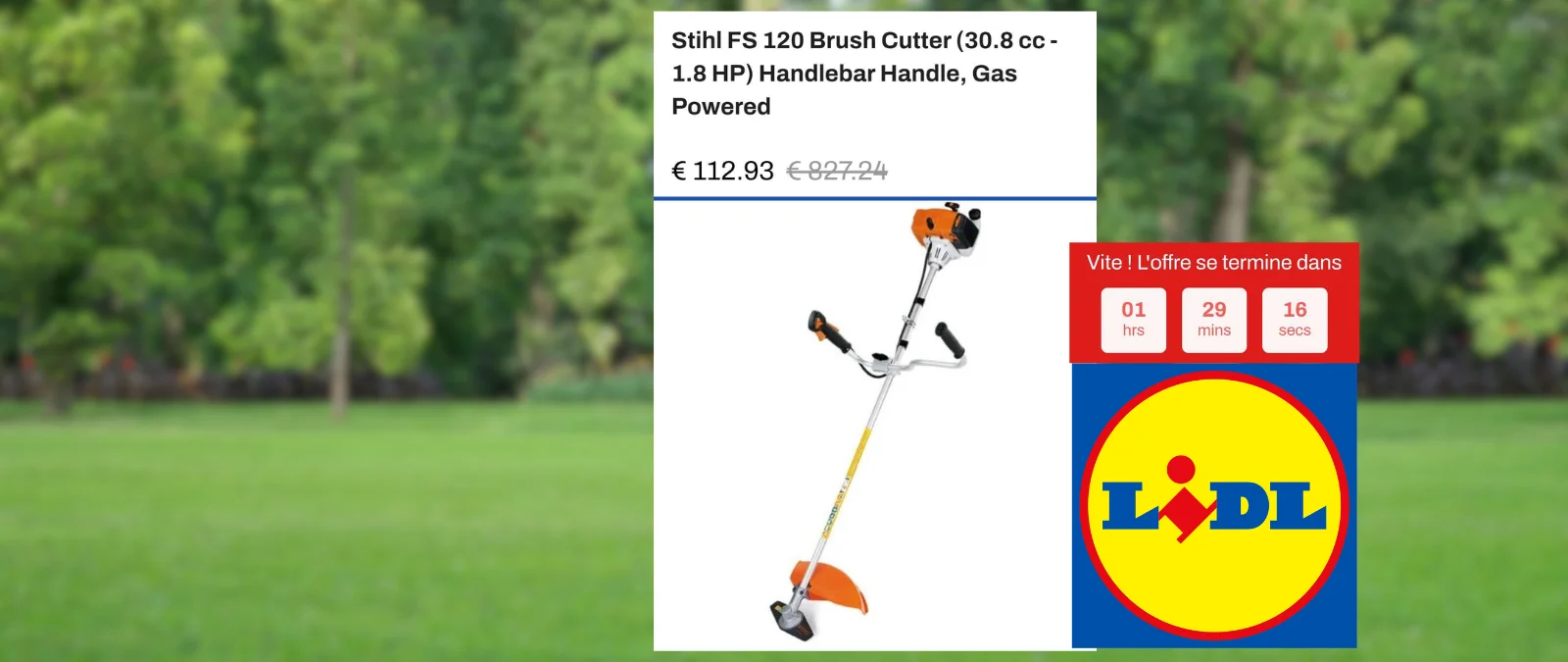 «Lidl oferta de una desbrozadora a gasolina de más de 800 euros por 112»