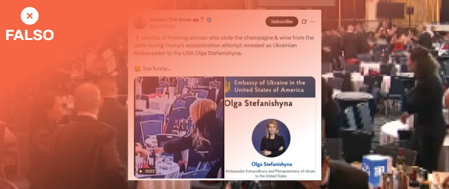 No, la mujer que robó champán y vino tras el tiroteo en la cena de corresponsales de la Casa Blanca no es la embajadora de Ucrania en EEUU