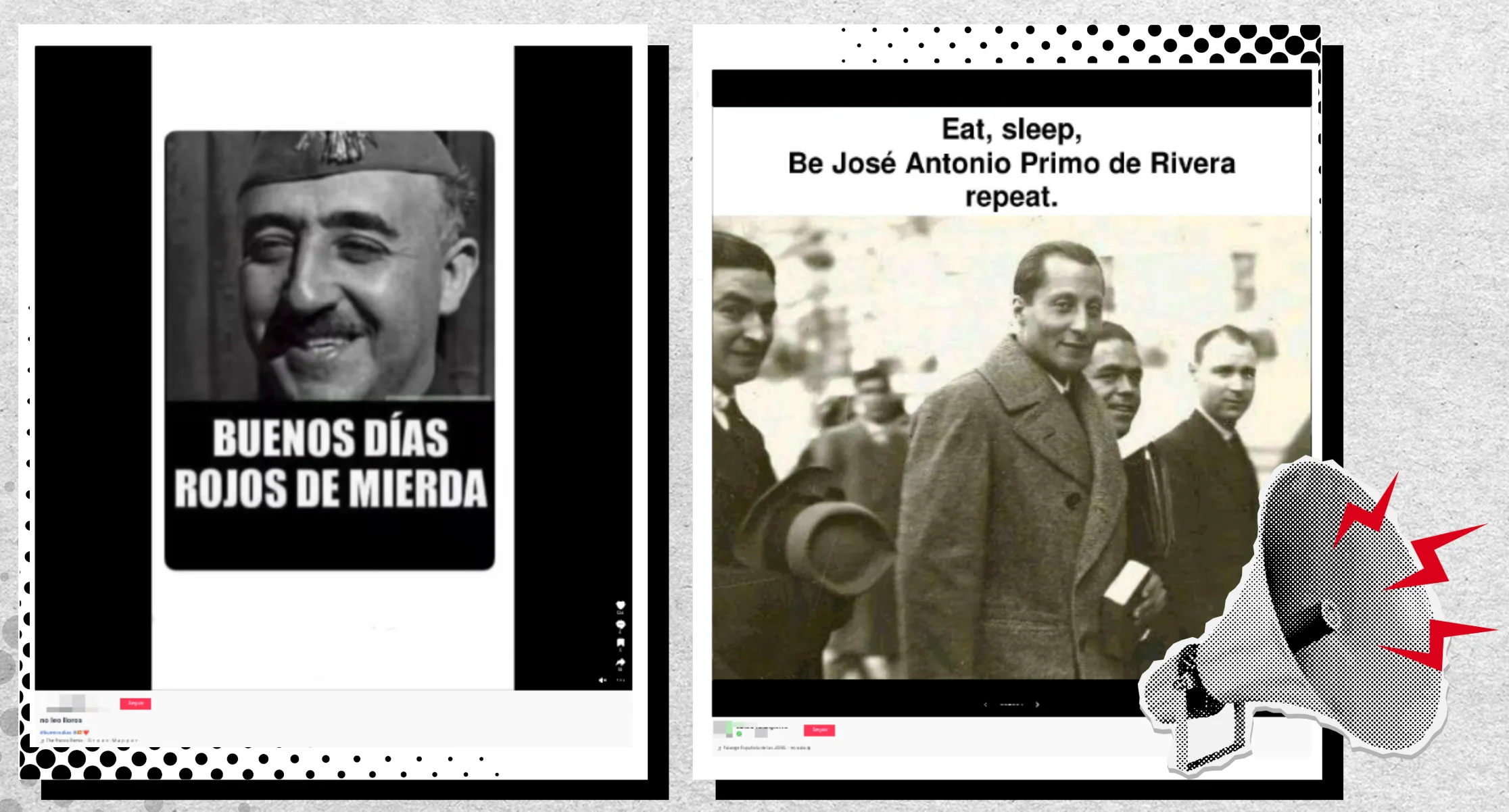 Un ejemplo es un audio de TikTok empleado en casi 400 vídeos en el que se utiliza uno de los lemas del franquismo: “España, una, grande y libre”, el eslogan fundacional del imaginario franquista que condensaba el mito de la España eterna e indivisible en tres palabras fáciles de memorizar y repetir, como indica un artículo de la Universidad de Alicante.