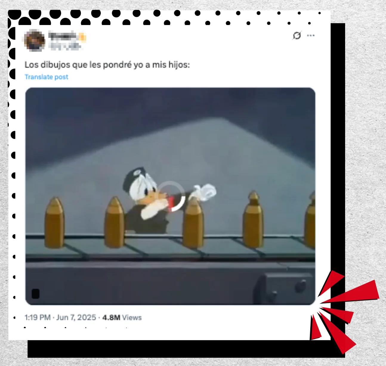 El objetivo de esta película, que llegó a ganar un Oscar al Mejor Cortometraje de Animación en 1943, era “ridiculizar y condenar los males del nazismo”, según explica la página web de The Walt Disney Family Museum. Sin embargo, las redes sociales lo han dotado de un significado opuesto: se usan fragmentos de este corto para ensalzar la figura de Hitler y la ideología fascista. Como, por ejemplo, este tuit con casi 5 millones de visualizaciones (ahora eliminado) en el que un usuario dice que son “los dibujos que les pondré yo a mis hijos”.