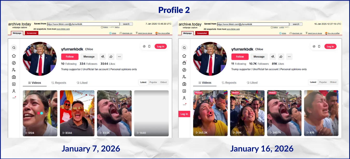 The political cause or ideology is not decisive. They jump between different topics depending on the political news cycle, use messages generic enough to appeal to any part of the political spectrum, or even support opposing candidates on the same account. For example, the account @mikaelitasiltop posted videos just hours apart supporting both candidates competing in Chile’s 2025 presidential election.