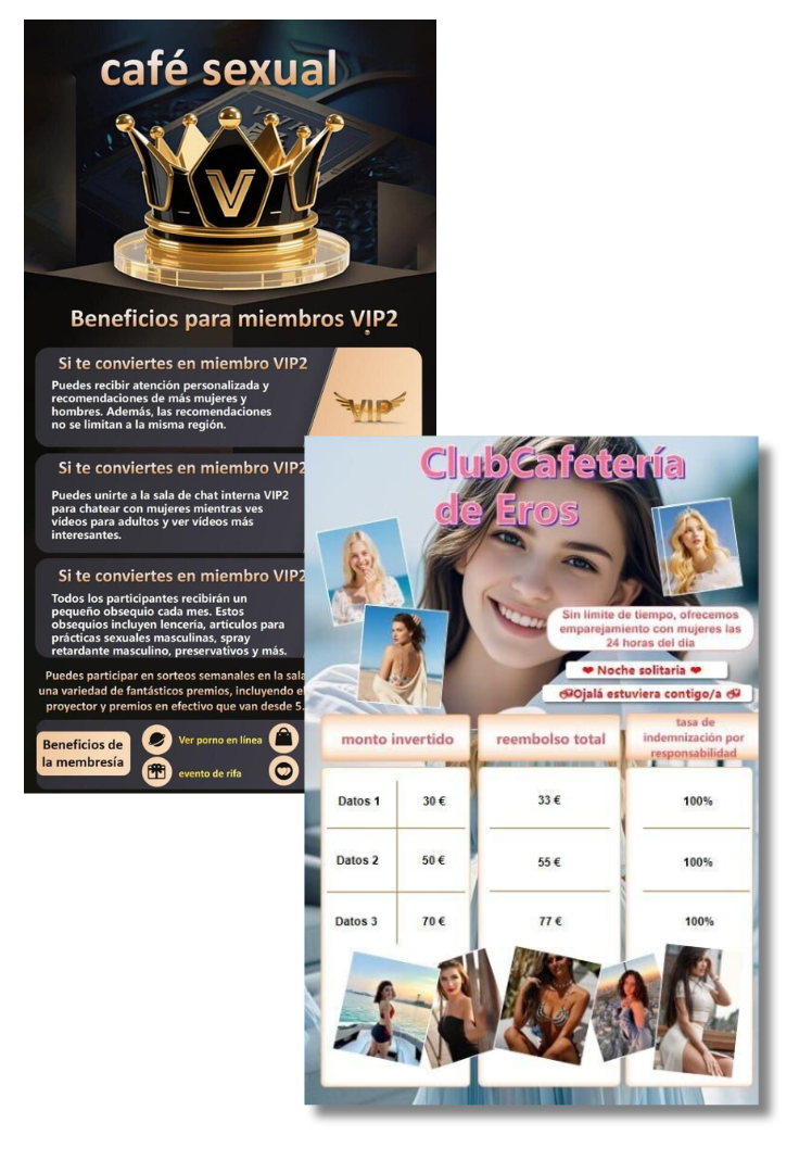Llegados a este punto, empiezan a pedirte dinero. Para quedar con la joven, te piden que actualices tu membresía a “VIP 2” haciendo tres pagos de 30, 50 y 70 euros. El gerente te asegura que te devolverán el dinero con un interés del 3%, como si estuvieras haciendo una inversión. Supuestamente, cuando realices los pagos, podrás “citarte con la mujer que te gusta y tener relaciones sexuales”.