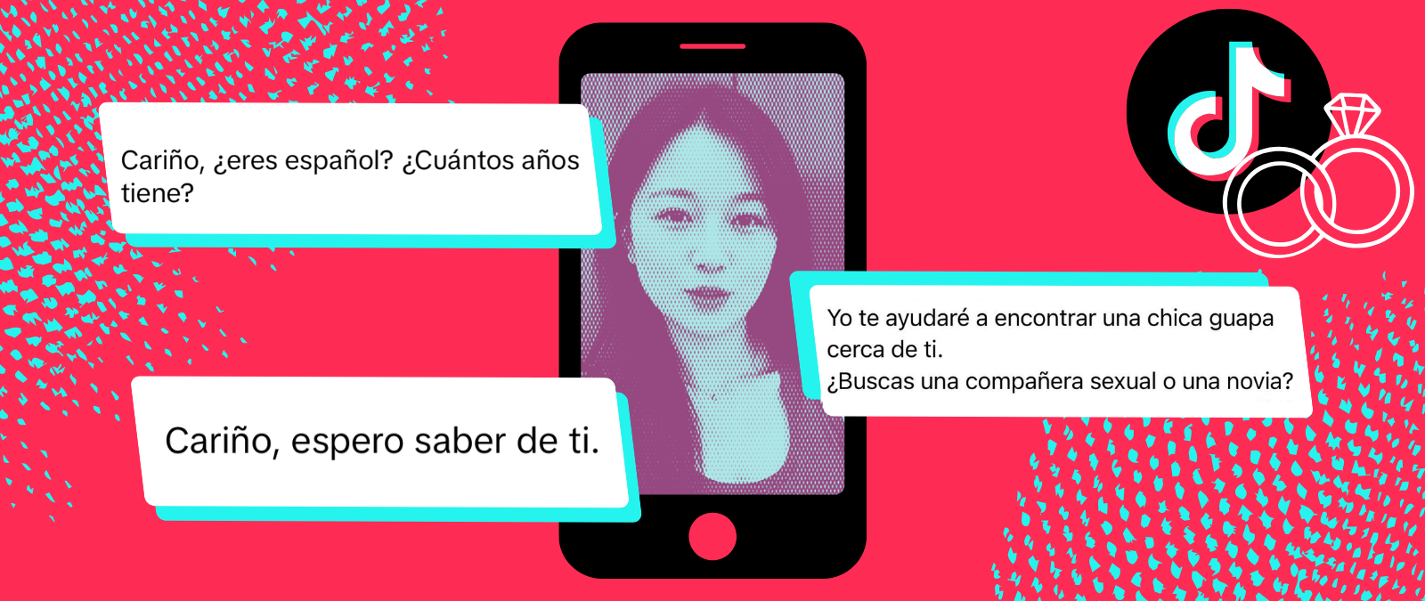 Jorge entra en el buscador de TikTok y escribe “soltero España”. Ante él, aparecen vídeos de mujeres, en su mayoría asiáticas, que dicen buscar marido español. “Si estás soltero, por favor, toma la iniciativa de contactarme”, se lee en el vídeo de una de estas cuentas. “Hola ¿qué tal estás?”, inicia él. Tras intercambiar unos pocos mensajes, la chica le pide hablar por Telegram. En esta plataforma de mensajería Jorge no habla con ella, sino que se presenta una intermediaria que dice que le pondrá en contacto con otras mujeres según sus preferencias. Para poder tener una cita con una de estas chicas, a Jorge le exigen pagar una membresía VIP.