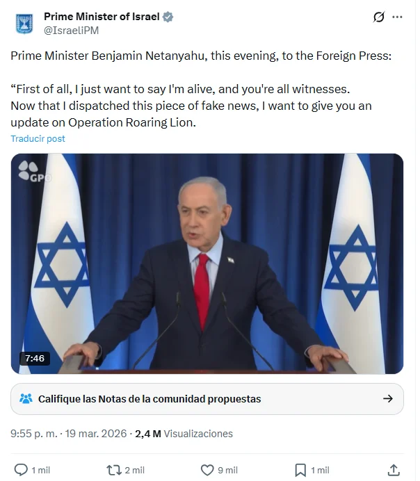 Apenas unas horas después del ataque de Israel y Estados Unidos a Irán, el 28 de febrero de 2026, y de la respuesta iraní, comenzó a difundirse en redes sociales que Benjamín Netanyahu, primer ministro de Israel, había muerto en un ataque de Irán. Comenzaba a moverse una teoría conspirativa que se ha extendido hasta nuestros días involucrando en ella a otros líderes israelíes.
