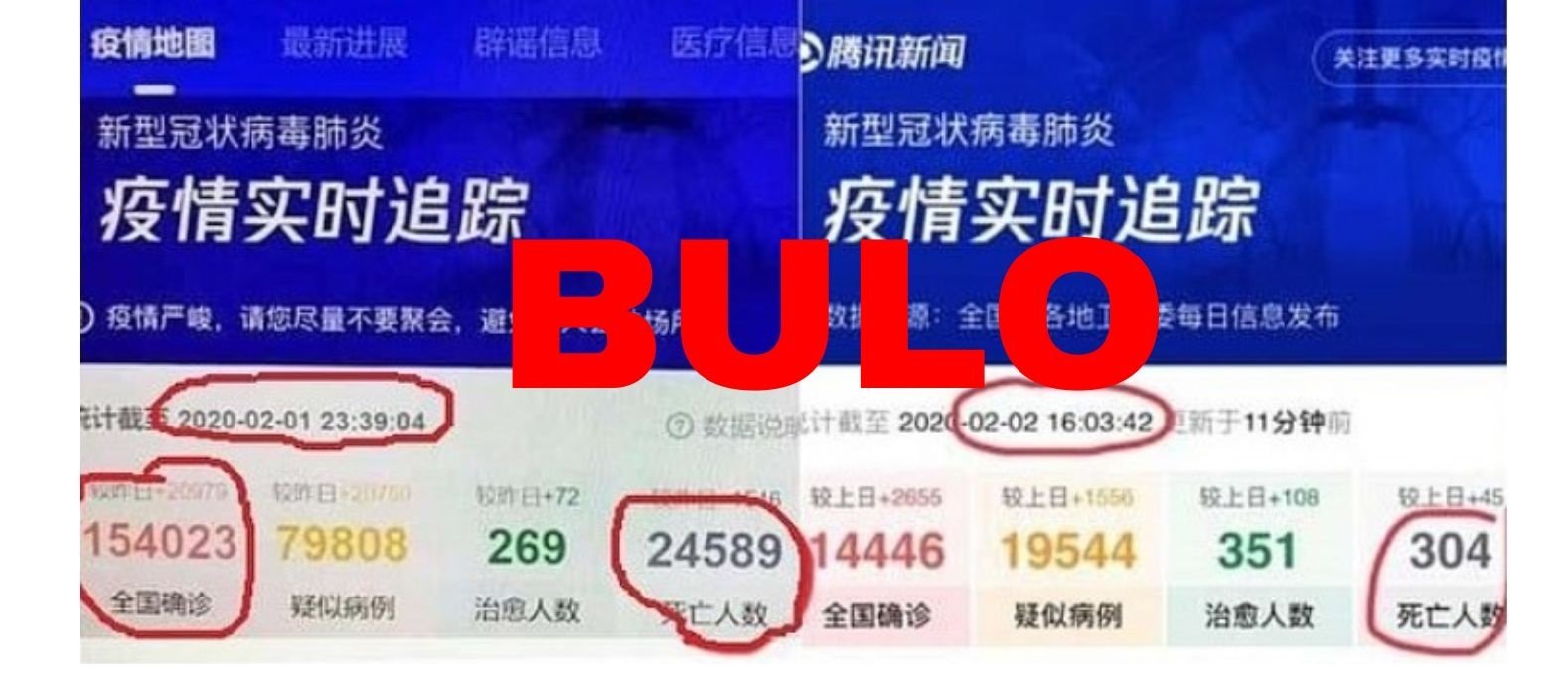 El diario británico Daily Mail publicó el día 5 de febrero un contenido con el titular "¿Han sido filtradas las cifras reales de muertes por el coronavirus? Una compañía china cifra el total de muertes en 24.589 pero rápidamente cambia a cifras oficiales" y al que hacen referencia otros medios. Posteriormente, el día 7 de febrero cambiaron el titular de este artículo a "¿Ha revelado el mayor portal online de China las cifras 'reales' de las muertes por el coronavirus? Capturas de imágenes que muestran 24.589 muertes desencadenaron teorías conspiranoicas 'podrían haber sido alteradas digitalmente".