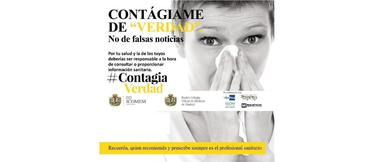 La iniciativa se encuadra dentro de la campaña “Contágiame de `verdad´, no de falsas noticias” con la que Consejo Científico del ICOMEM llama la atención sobre los bulos y falsos mitos en salud en Internet, redes sociales y medios de comunicación.