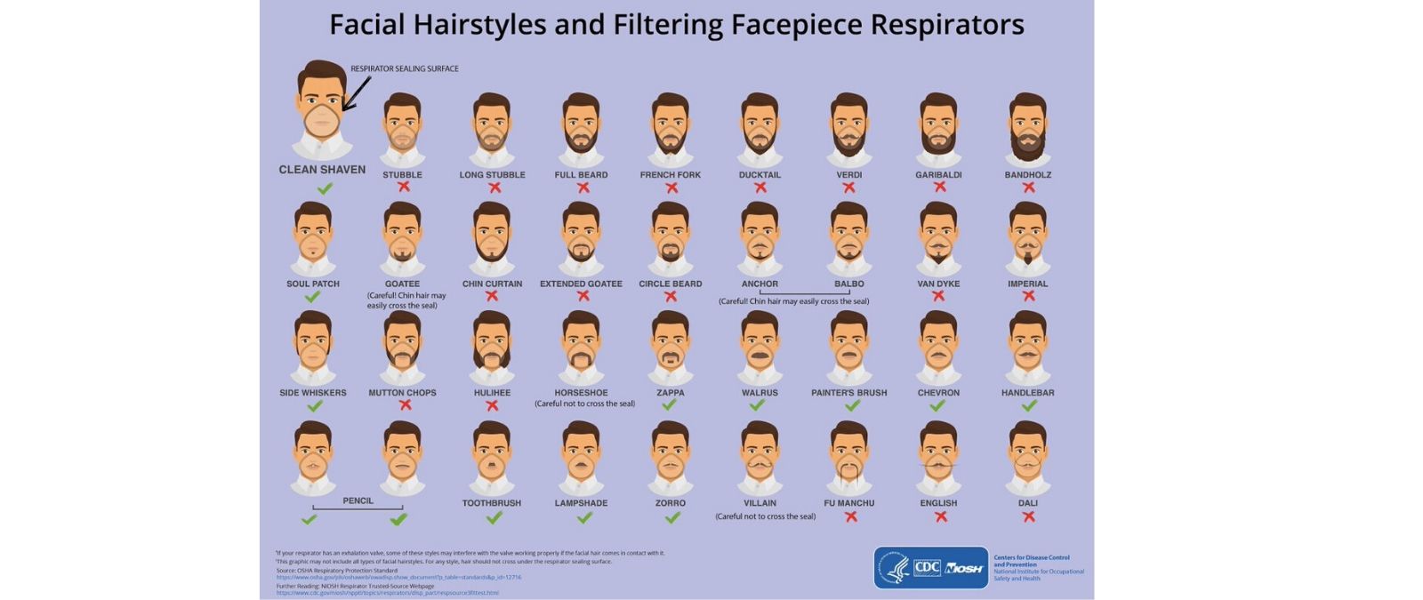 Los CDC han aclarado que la imagen es del 2017 y está destinada a los trabajadores que tienen que llevar mascarillas o respiradores ajustados. Fue publicada por el Instituto Nacional para la Salud y Seguridad Ocupacional (NIOSH por sus siglas en inglés).