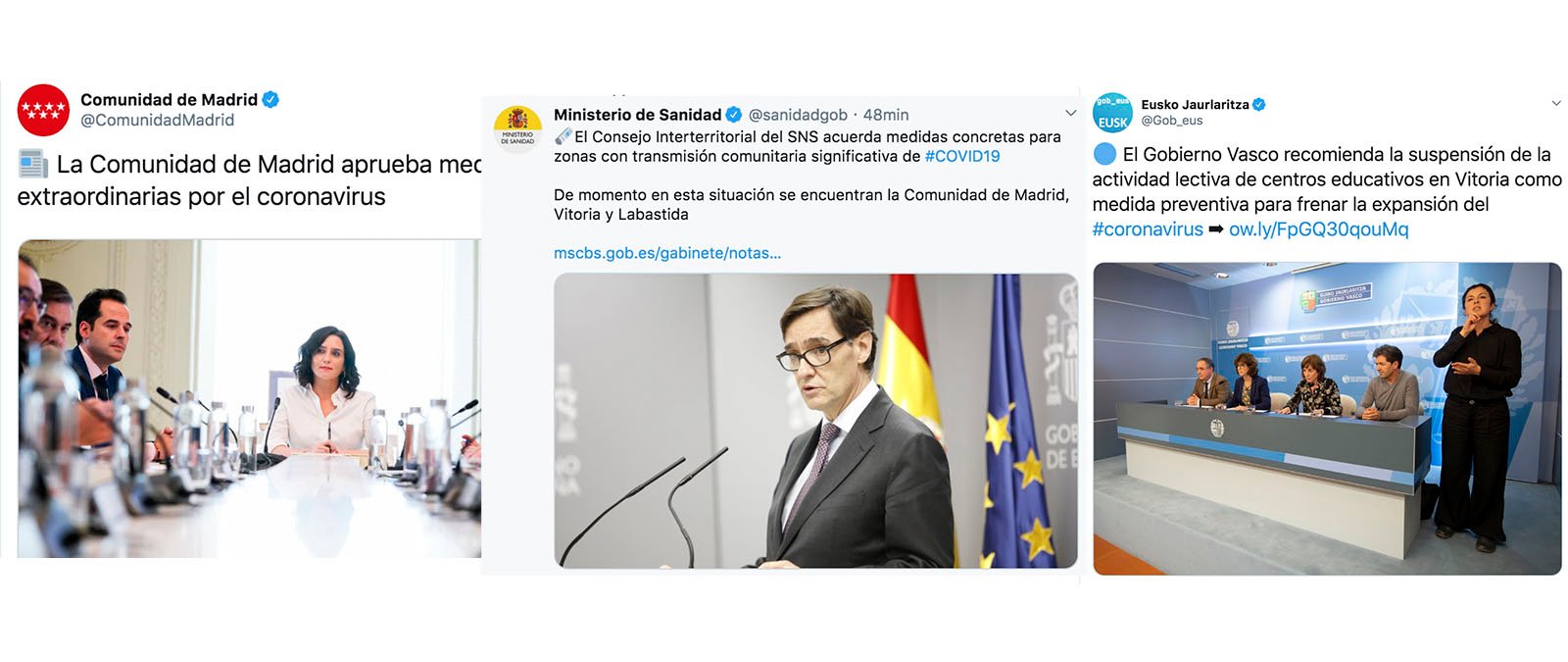 - Suspensión de la actividad docente presencial en todos los niveles educativos (Universidades, Bachillerato, Educación Secundaria, Educación Primaria e Infantil, Guarderías, Formación Profesional y otros).