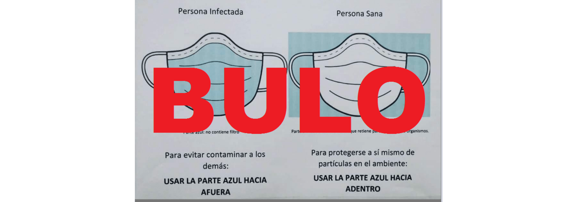 Nos habéis preguntado por una imagen que circula por redes sociales y que proporciona las supuestas instrucciones necesarias para hacer un uso eficaz de las mascarillas. Según esta, una persona infectada debería colocarla con la parte azul hacia fuera, para evitar contaminar a los demás y una persona sana, al revés, con la parte blanca, para protegerse a sí mismo de partículas en el ambiente.