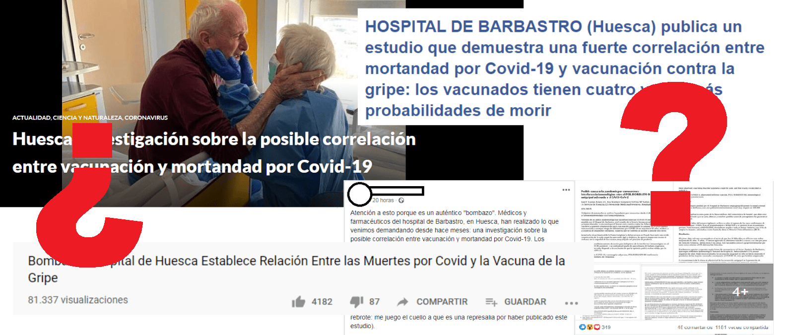 Esta recogida de datos fue realizada por tres médicos del hospital de Barbastro, en Huesca. En ella se analizan los 45 fallecimientos por COVID-19 que ha habido en ese área hospitalaria y en una residencia de ancianos de la misma zona. De los 20 fallecidos en el hospital, 17 habían sido vacunados contra la gripe; y de los 25 que murieron en la residencia, 24 habían recibido la misma vacuna. Los resultados resultaron llamativos para los autores porque el porcentaje de vacunados entre las víctimas es mayor que el porcentaje de vacunados entre la población general.