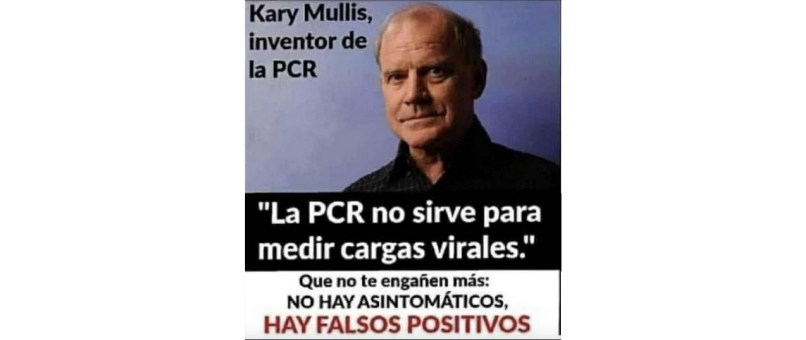 Ya hemos desmentido una imagen con la fotografía de Kary Mullis, científico descubridor de la reacción en cadena de la polimerasa (PCR por sus siglas en ingles) que se usa para detectar el coronavirus SARS-CoV-2, que le atribuía haber dicho que la PCR no sirve en la detección de virus. Aunque Mullis criticase las PCR cuantitativas, estas pruebas sirven y se usan para detectar el coronavirus SARS-CoV-2, como contamos aquí.