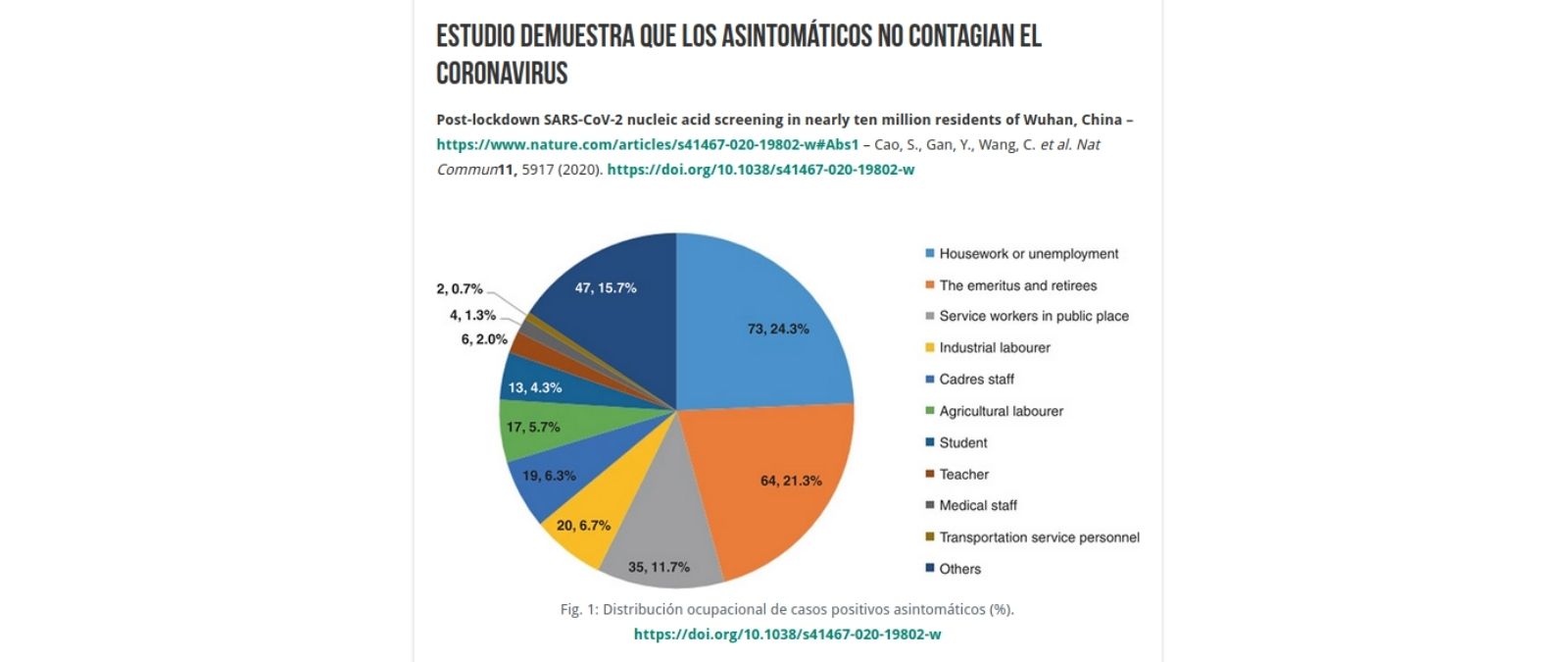 - El artículo de Nature no concluye ni dice en ningún apartado que los asintomáticos no contagien el coronavirus.