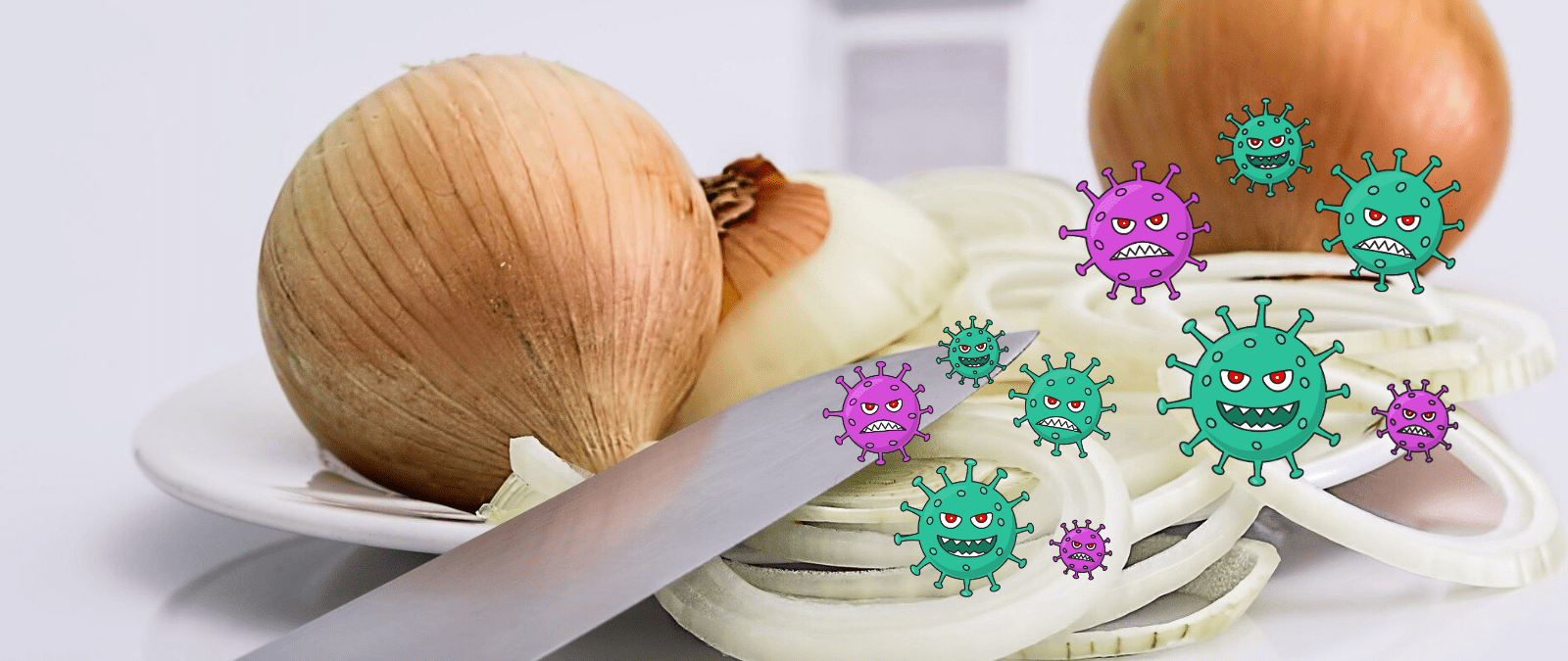 En teoría, el virus de la influenza se adhiere a la cebolla y esta lo absorbe, evitando que el virus siga circulando por el ambiente y, por lo tanto, reduciendo el riesgo o incluso evitando su contagio.
