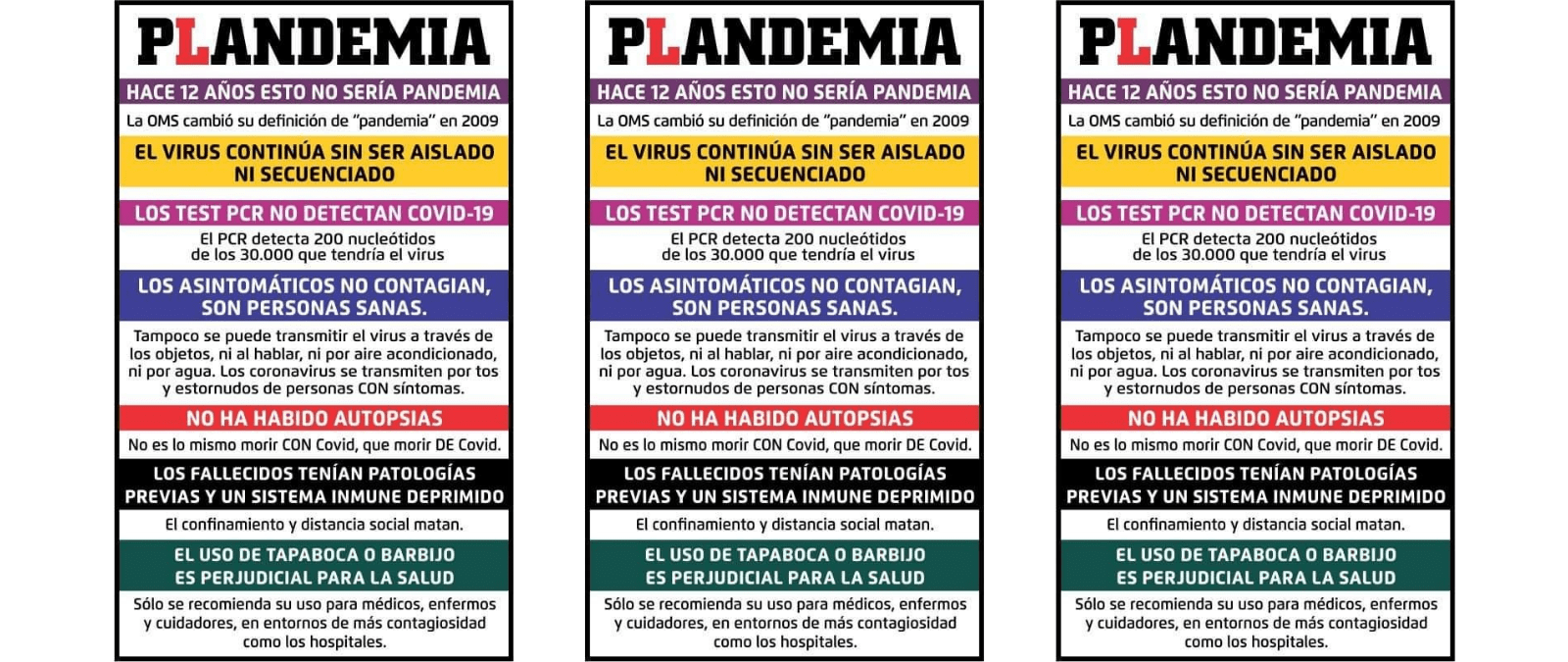 La imagen afirma que "los test PCR no detectan COVID-19" y que estos "detectan 200 nucleótidos de los 30.000 que tendría el virus". Sin embargo, en Maldita Ciencia ya hemos explicado cómo funciona una prueba PCR y por qué las que se utilizan actualmente sí son específicas para detectar el SARS-CoV-2.