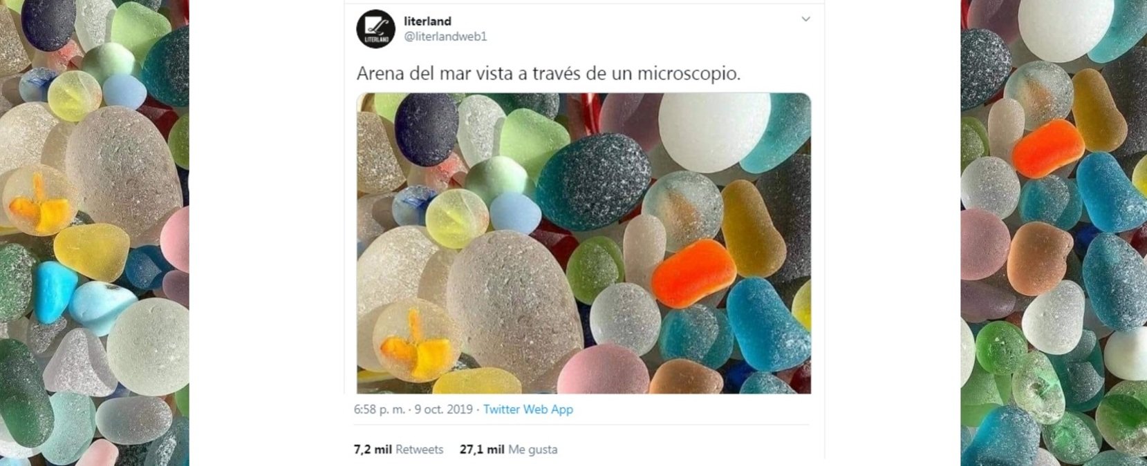 Por un lado, el origen de la imagen es esta cuenta de Instagram donde se recopilan varias fotografías de vidrio marino y cuyas descripciones en ningún momento apuntan a que se trate de arena de playa como tal. "El vidrio es un componente natural de algunas rocas, sobre todo volcánicas. Sin embargo, la variedad de colores concentradas en la muestra no parece que se corresponda a una fuente natural", explica a Maldita Ciencia Manuel Montes, investigador de Instituto Geológico y Minero de España (IGME). El vidrio marino puede formarse en cualquier masa de agua que esté en constante movimiento. De ahí que los fragmentos, que proceden de objetos de este material que se han roto al chocar contra las rocas, se encuentren redondeados y pulidos.