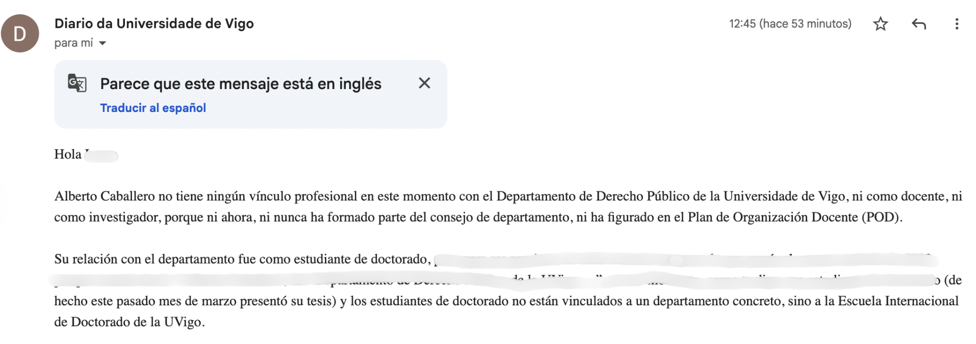 El autor único del trabajo es Alberto Caballero que, al contrario de lo que afirmaban algunos titulares, nunca ha formado parte de la plantilla de investigadores de la Universidad de Vigo, como confirman a Maldita.es desde el departamento de comunicación de la universidad.