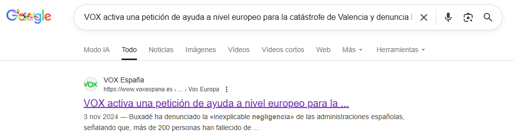 El comunicado ya no aparece publicado en su web. A 12 de diciembre de 2025, al buscar el titular de la nota de prensa, Google ofrece un resultado de la web de Vox, pero, al hacer click en el enlace, redirige a la pantalla principal. El contenido está archivado en Wayback Machine.