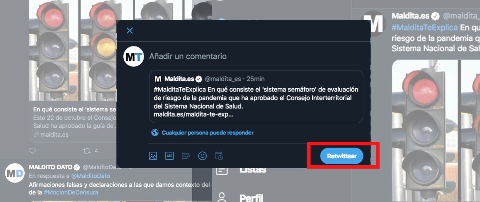 Con los nuevos cambios, al presionar el botón de hacer retuit la plataforma nos lleva directamente a la opción de añadir una cita junto a la publicación que queremos compartir. Eso no quiere que sea obligatorio añadir un comentario: haciendo clic en el botón "Retwittear", el tuit se compartirá como hasta ahora, haya o no una cita.